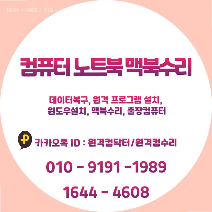 출장 서비스 지역☞ 서울 경기 인천 부산 천안 아산 창원(마산,진해) 양산 김해노원구 상세 지역: 월계동, 공릉동, 하계동, 상계동, 중계동, 월계1동, 월계2동, 월계3동, 공릉1동, 공릉2동, 하계1동, 하계2동, 중계본동, 중계1동, 중계4동, 중계2.3동, 상계1동, 상계2동, 상계3.4동, 상계5동, 상계6.7동, 상계8동, 상계9동, 상계10동 ※본 포스팅은 컴닥터의 서비스 소개 및 컴퓨터 관련 서비스에 대한 안내를 목적으로 하며, 실제 서비스 내용 및 가격은 변동될 수 있습니다. |