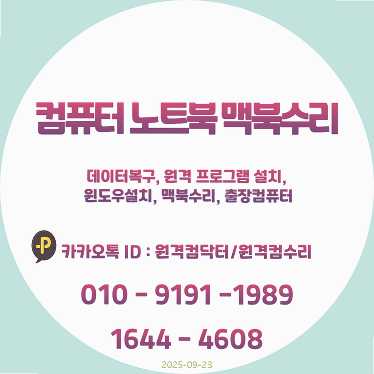 | 오정구 컴퓨터수리 노트북수리: 맥북수리와 원격 프로그램설치, 전문가가 신속하게 해결해 드립니다! (0) | 2025.09.22 |