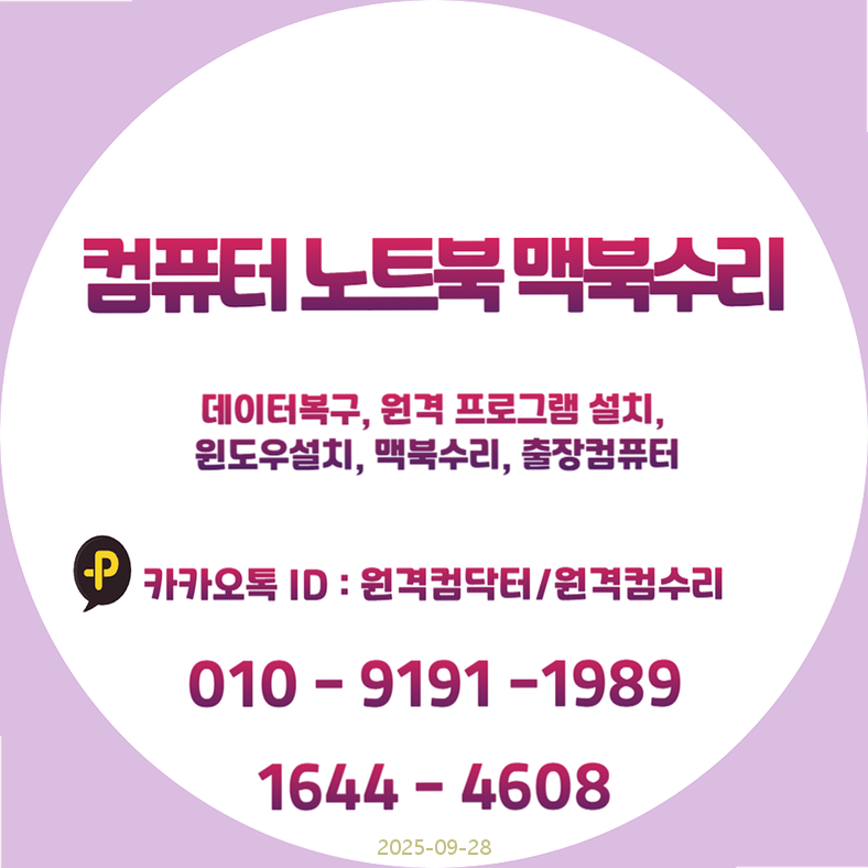 | 빠르고 정확한 하남시 컴퓨터수리 노트북수리, 깔끔한 컴퓨터초기화부터 원격 프로그램설치까지 완벽 지원! (0) | 2025.09.26 |
