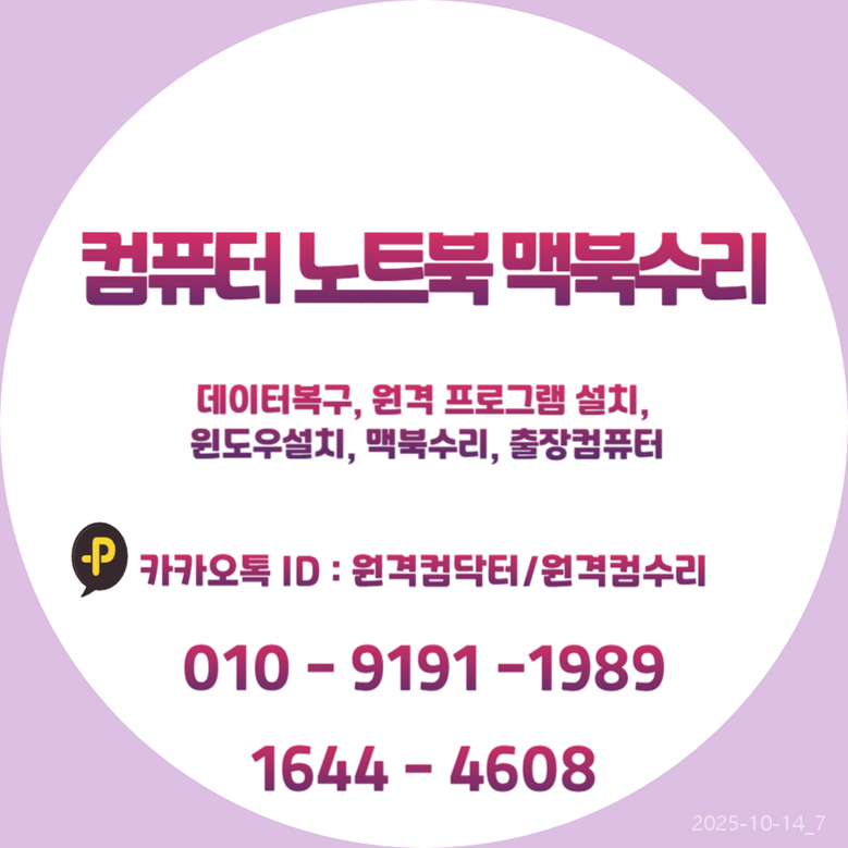 문의 상담: 010-9191-1989 카카오채널 ID: 원격컴수리(전화, 문자, 카카오톡 상담 가능)
