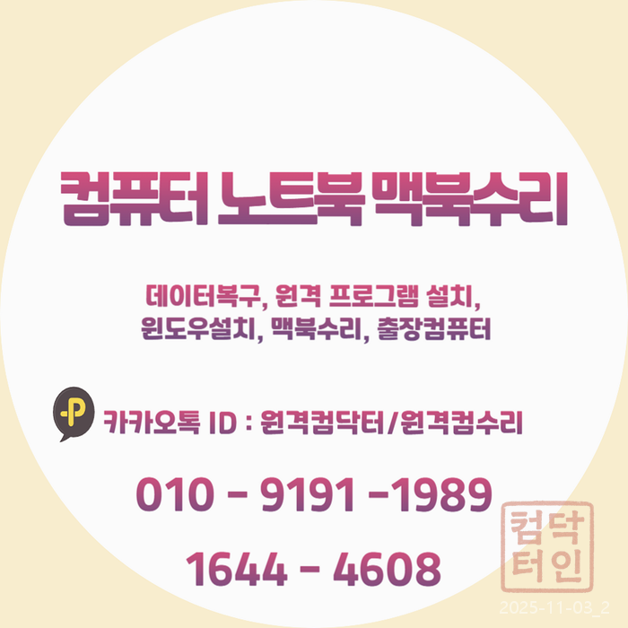 - 카카오채널 ID: 원격컴수리 (전화, 문자, 카카오톡 모두 환영합니다!)