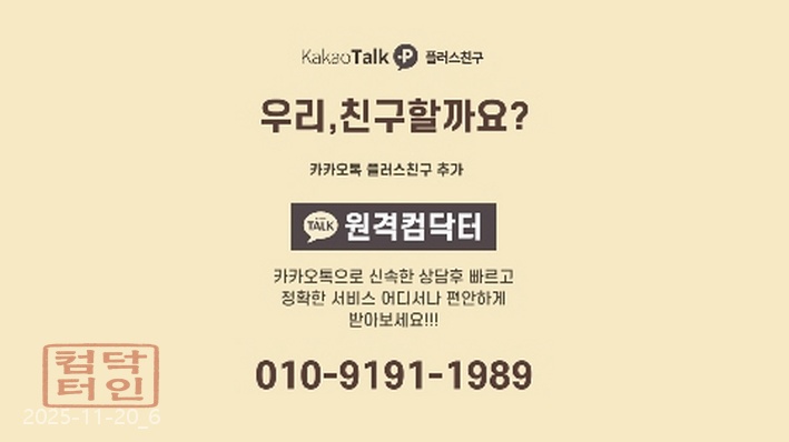 - 카카오톡 ID: 원격컴수리 (또는 원격컴닥터)