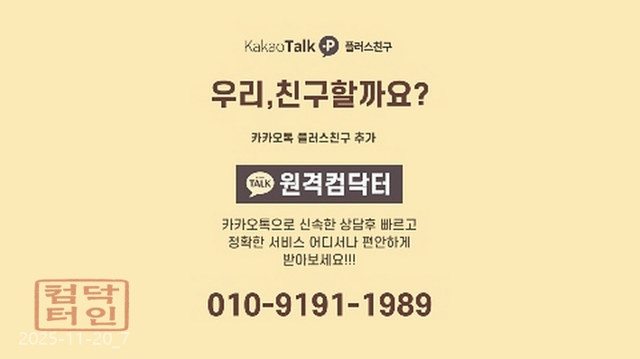 | 카카오톡 | ID: 원격컴닥터 | 09:00 ~ 22:00 |