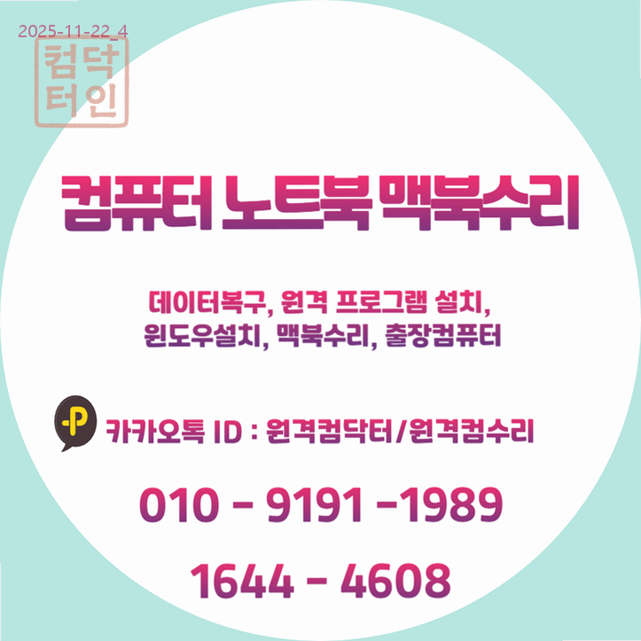 - 카카오톡 ID: 원격컴닥터 (또는 원격컴수리)