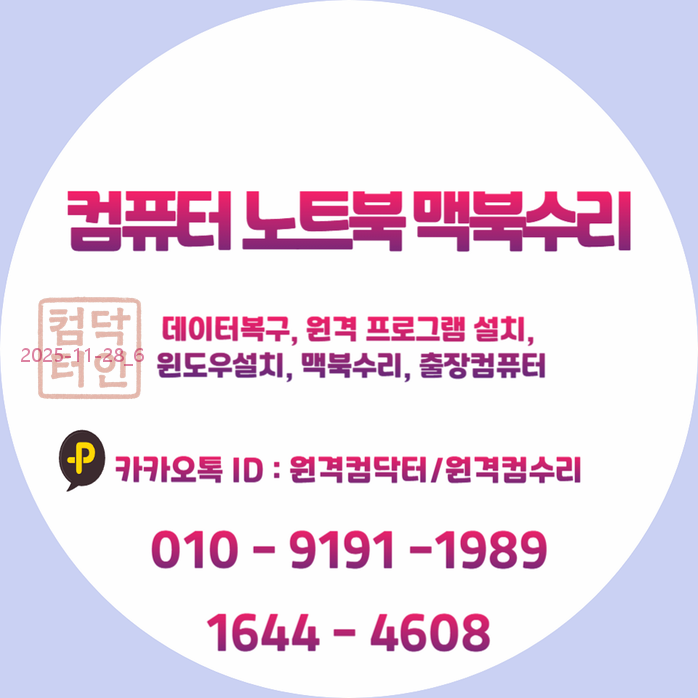 | 🎨 안양시 포토샵설치 & 스케치업설치, M1 윈도우설치부터 원격 프로그램 대행설치까지! 전문가의 출장컴퓨터 서비스로 완벽 해결! 💻✨ (0) | 2025.11.28 |