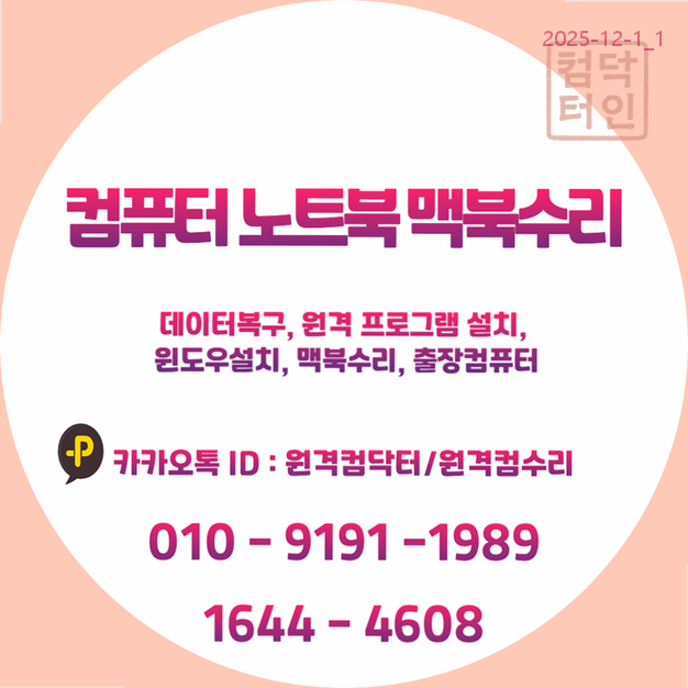 | 🎨 안산시 포토샵/스케치업 설치부터 긴급 저장장치 복원까지! 컴닥터가 해결합니다 (0) | 2025.12.02 |