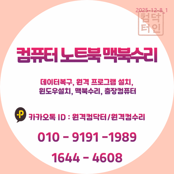 - 카카오톡: '원격컴닥터' 또는 '원격컴수리' 검색후 채널 추가