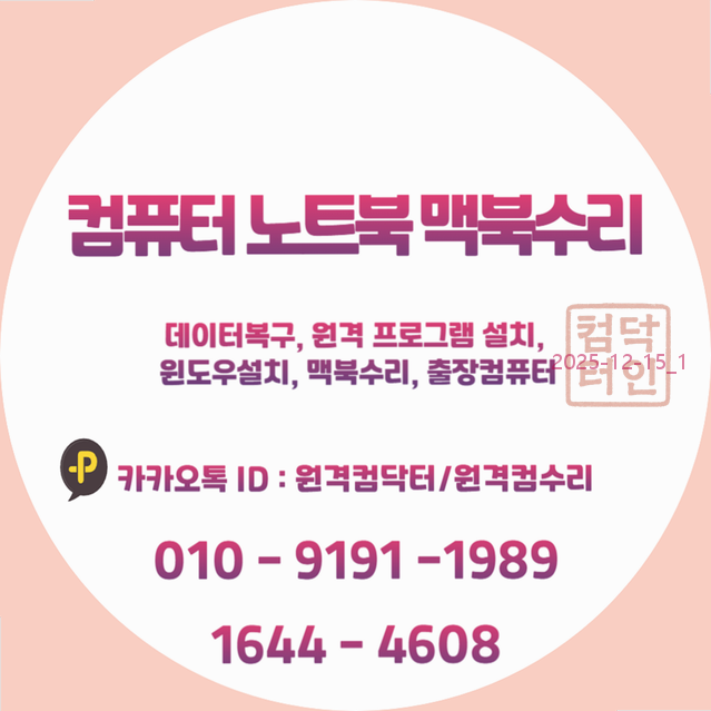 - 💬 카카오톡 채널: ID '원격컴수리' 검색 후 추가 (채팅 상담 가능)