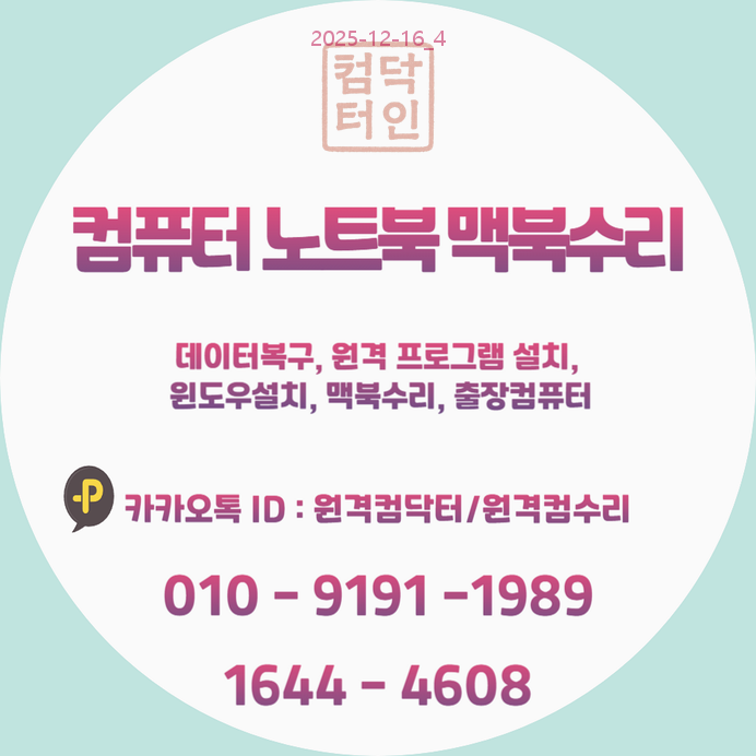 | 🎨 영통구 포토샵/스케치업 설치부터 윈도우7설치까지! 🚀 컴닥터의 출장컴퓨터 & 원격 프로그램 대행설치 완벽 솔루션! 💡 (0) | 2025.12.15 |