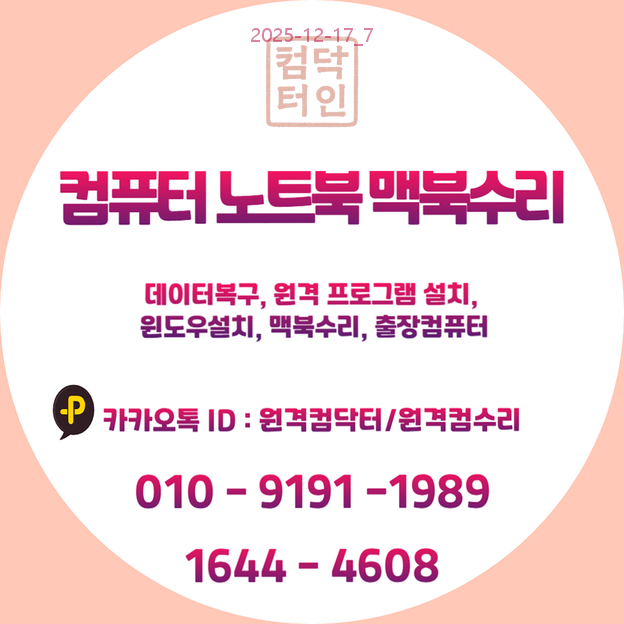 | 🎨 동안구 포토샵설치 & 스케치업설치 전문가! PC수리전문 컴닥터의 출장컴퓨터와 원격 프로그램 대행설치로 작업 효율 100배! 🚀 (0) | 2025.12.17 |