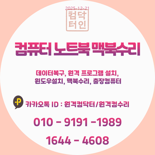 - 카카오톡 문의: 카카오채널 ID '원격컴수리' 또는 '원격컴닥터'