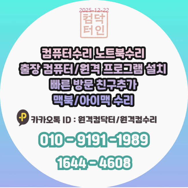 - 카카오톡 문의: 카카오채널 ID '원격컴수리' 또는 '원격컴닥터'