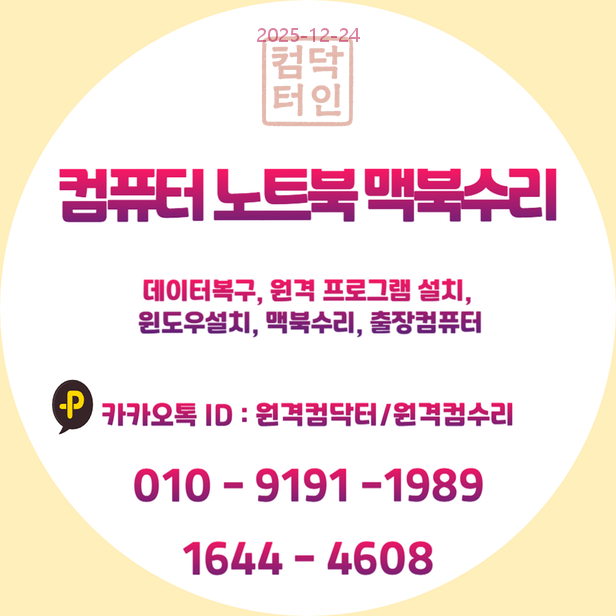 - 카카오톡 문의: 카카오채널 ID '원격컴수리' 또는 '원격컴닥터'