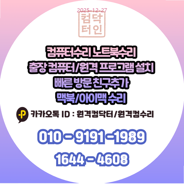 - 카카오톡 문의: 카카오채널 ID '원격컴수리' 또는 '원격컴닥터'