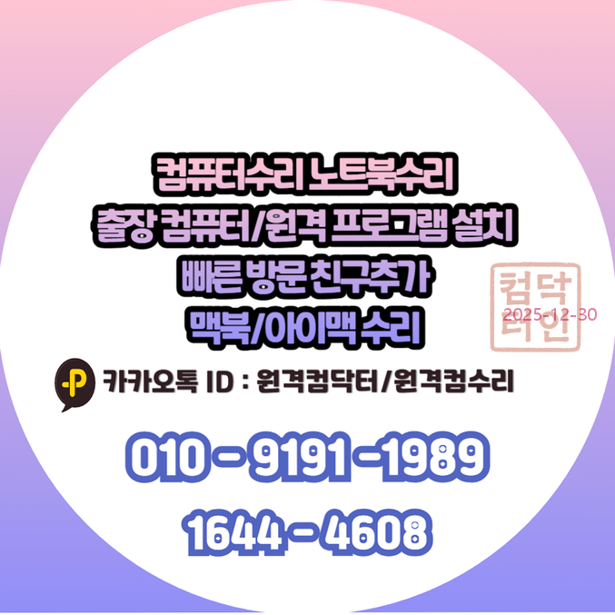 - 카카오톡 문의: 카카오채널 '원격컴수리' 또는 '원격컴닥터' 검색